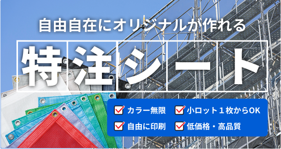 防炎Ⅱ種メッシュシート、防炎シート、防音シート、 看板シート、飛散防止、落下防止用小幅ネット、フルオーダーなど多彩なラインナップに対応します。